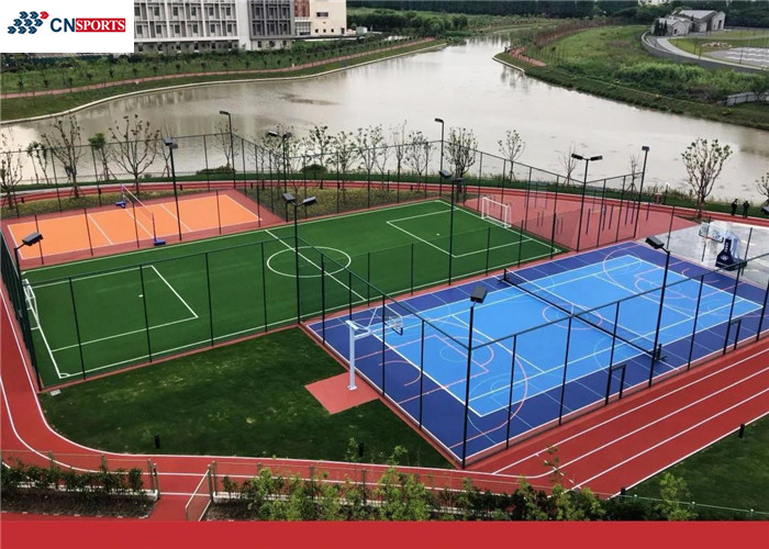 | Material do SPU | Cimento e base do asfalto | O superior duro e o resiliente sob a estrutura são especiais para o tênis. A baixa camada do coxim do módulo na parte inferior joga o efeito o mais apropriado do amortecedor. O módulo alto para reforçar a camada no meio fornece a suficiente repercussão da compressão. A superfície dura da tenacidade fornece a textura superior do esporte. O sistema inteiro assegura-se de que o campo de tênis tenha o amortecedor eficaz, resistência do deslizamento ao desempenho começar, se mover e de repercussão. |